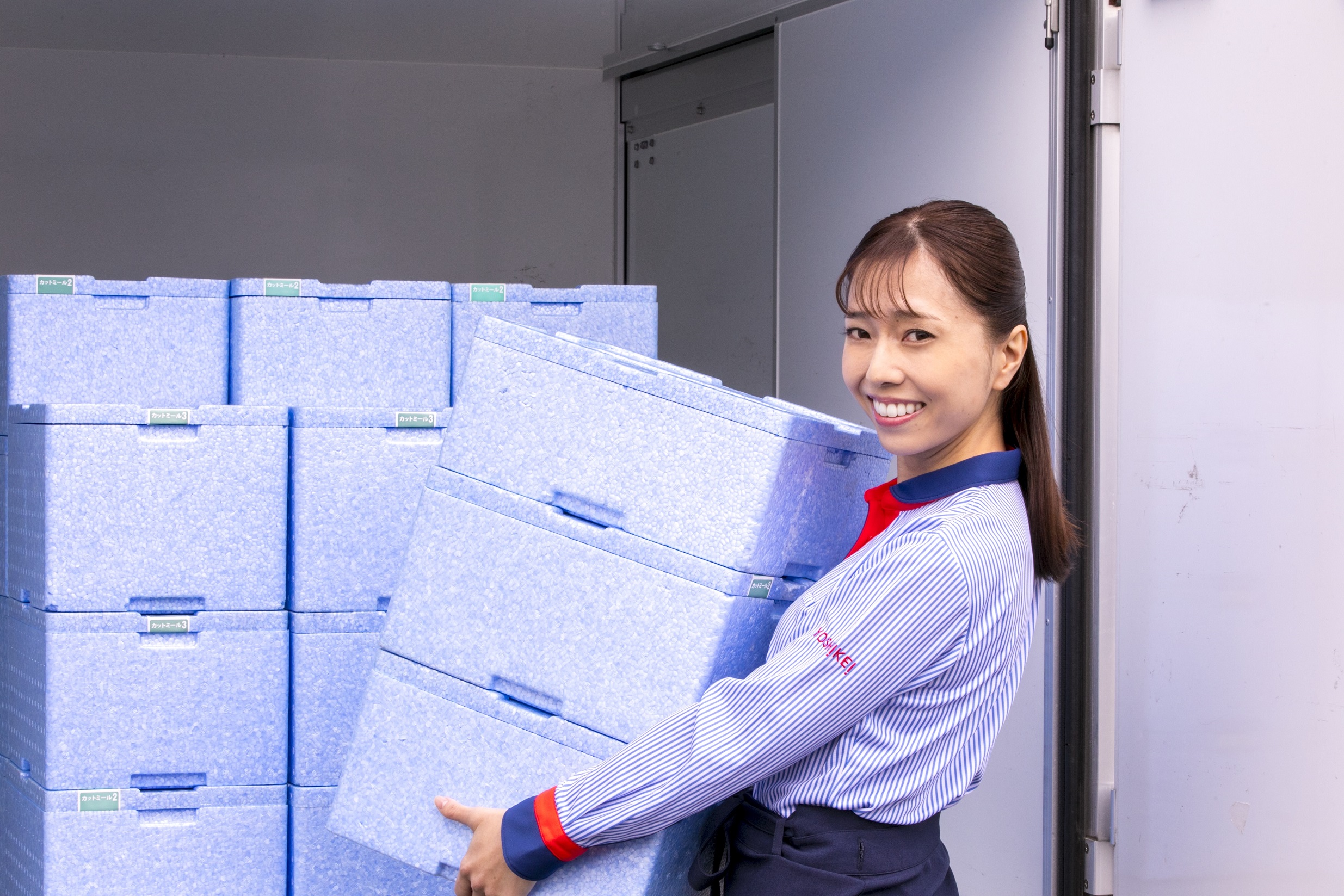 配達中は一人で業務をこなしますが、会社に戻ればたくさんの仲間と和気あいあい、冗談を言いながらの楽しい職場です。社員同士のコミュニケーションを大切に、仕事だけでなくプライベートの悩み事、相談事も話せるような仲間作りをしています。